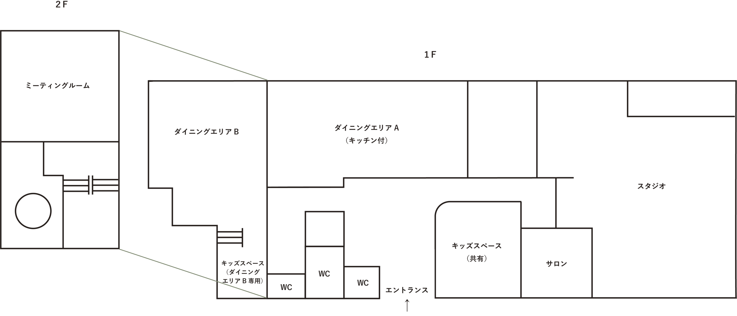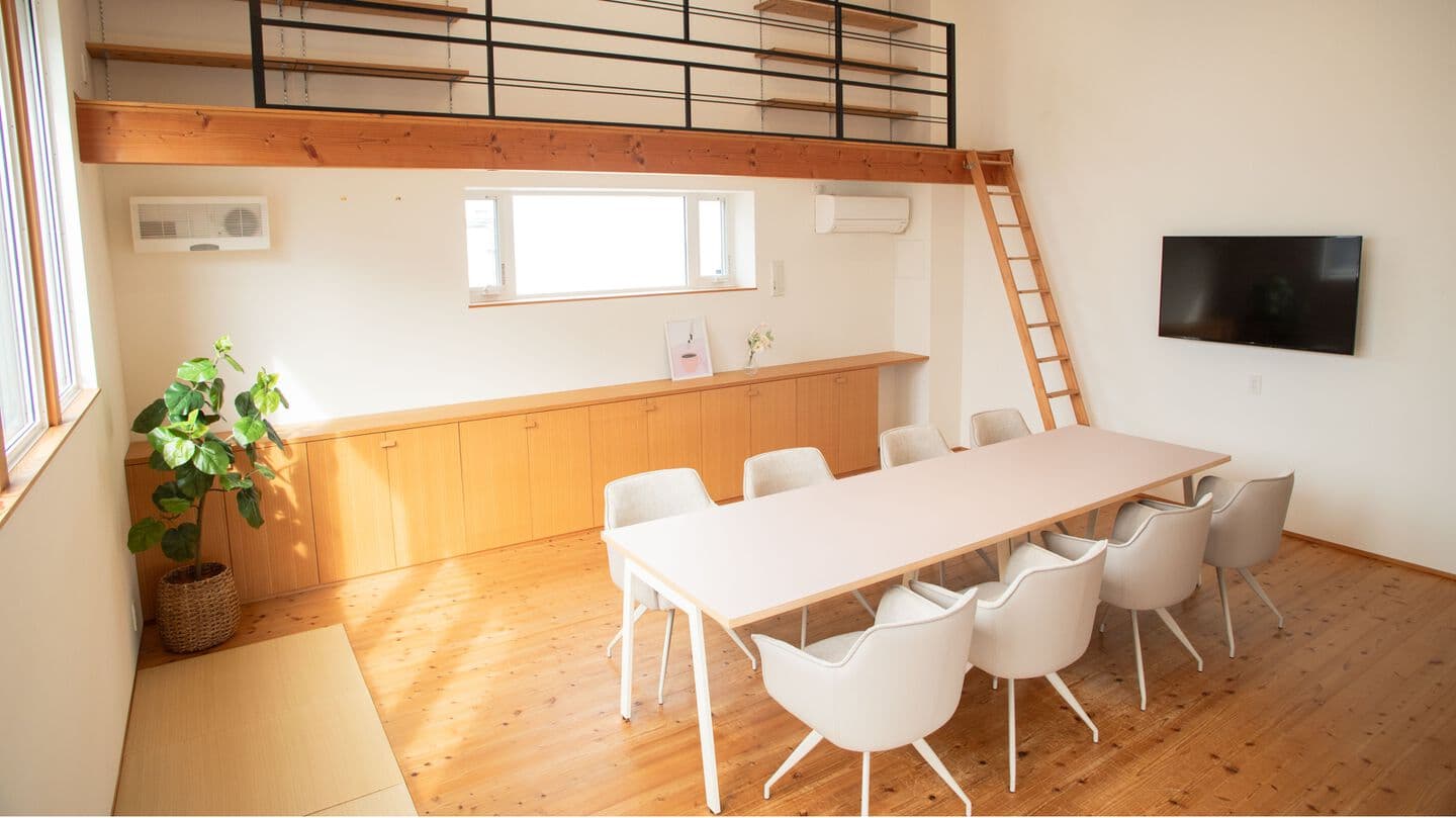 ダイニングエリア・ミーティングルーム・スタジオ・サロン含む一棟を借りるプラン。